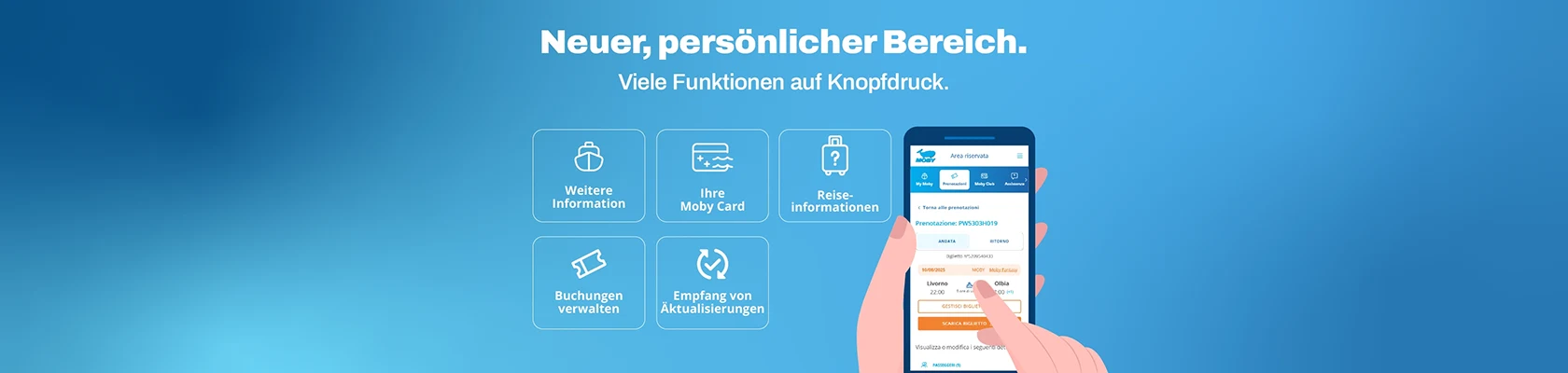 Ab heute bietet Moby seinen Passagieren die beste Art der „Navigation“ auf der offiziellen Website mobylines.de an, indem ein neuer persönlicher Bereich zur Verfügung gestellt wird, der die Art und Weise, wie Sie Ihre Tickets verwalten, revolutioniert. So wie Moby Fantasy und Moby Legacy, die beiden Flaggschiffe, die zwischen Livorno und Olbia verkehren, die Art und Weise, wie Sie mit der Fähre reisen, revolutioniert haben. Denn die beiden Schiffe bieten ihren Passagieren Kreuzfahrtstandards. Das Projekt basiert auf den modernsten Cloud-Technologien, und die Nutzer können sich auf die Sicherheit ihrer Daten und persönlichen Informationen verlassen. Nach der Registrierung im privaten Bereich unter mobylines.de, können die Nutzer auf eine Reihe von Funktionen zugreifen, die ihnen volle Autonomie und Transparenz bei der Verwaltung ihrer Reise garantieren. Insbesondere können die Fahrgäste nach der Anmeldung in ihrem privaten Bereich automatisch alle von ihnen vorgenommenen Buchungen einsehen und diese auf bestmögliche Weise und völlig selbständig verwalten. Es wird also möglich sein, jederzeit detaillierte Informationen über die Reise abzurufen (Fahrpläne, Überfahrt-Dauer, Name des Schiffs, Einschiffungshafen und alle Einzelheiten der Überfahrt); in Echtzeit Aktualisierungen und Benachrichtigungen über eventuelle Änderungen (Verspätungen, Voraussagen, Änderungen) zu erhalten und so die Zeit zu optimieren; die Fahrkarten jederzeit einzusehen und auszudrucken; die Buchung selbständig zu ändern oder zu stornieren und sich für das Moby-Card-Programm anzumelden, das die Möglichkeit bietet, Treuepunkte zu sammeln, den Kontostand zu überprüfen und personalisierte Preisgutscheine zu erstellen. Mit dieser Initiative bekräftigt Moby einmal mehr sein Engagement, einen Service zu bieten, der immer näher an den Bedürfnissen seiner Fahrgäste ist und sich auf Innovation, Einfachheit, Transparenz und Datensicherheit konzentriert. Bei Moby beginnt der Urlaub mit der Anreise. Und ab heute schon mit der Verwaltung des Tickets im privaten Bereich jedes Fahrgastes unter www.mobylines.de.Anmelden oder Registrieren