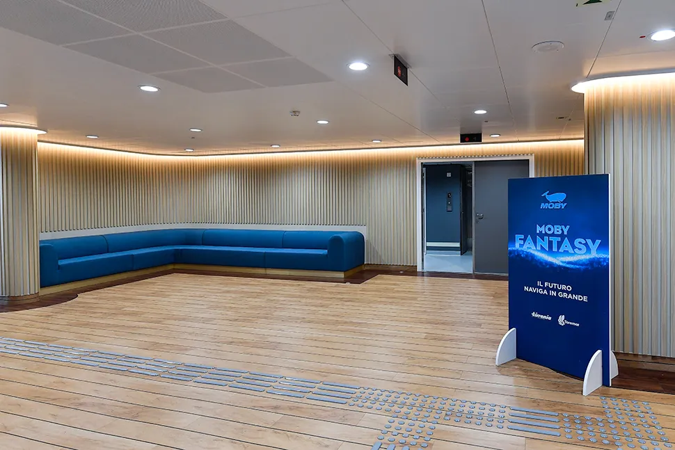 Lungo entrambi i lati della nave, da poppa a prua, si sviluppano le due promenade, arredate con poltrone e divani, ove i passeggeri potranno trascorrere comodamente la loro traversata, in un ambiente moderno e raffinato. Per rispondere al meglio alle esigenze di tutti i tipi di passeggeri, lungo i corridoi è presente un percorso per ipovedenti.